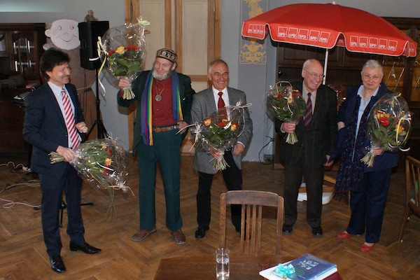 Glückwünsche und Grußworte sprachen Andrea Suhr als Vorsitzende des SPD Unterbezirks Oberhavel und die Bundestagsabgeordnete Angelika Krüger-Leißner sowie Bürgermeister Filippo Smaldino-Stattaus. Für begleitende Melodien wie für prägnante musikalische Akzente sorgte Jeffrey Lee Mills am Keyboard.